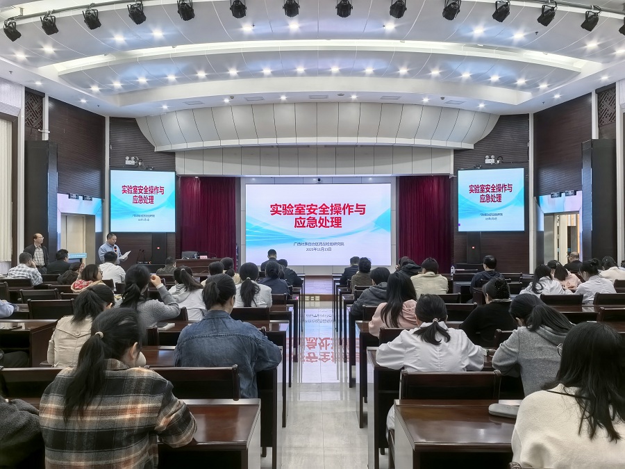 2025年11月是全国第34个消防宣传月,为进一步提升实验室安全管理水平,增强干部职工安全防范意识和应急处理能力,11月13日上午,广西药检院组织开展实验室安全操作与应急处理专题培训。邀请广西大学化学化工学院蒋林斌教授授课,全院150名干部职工参加培训。
